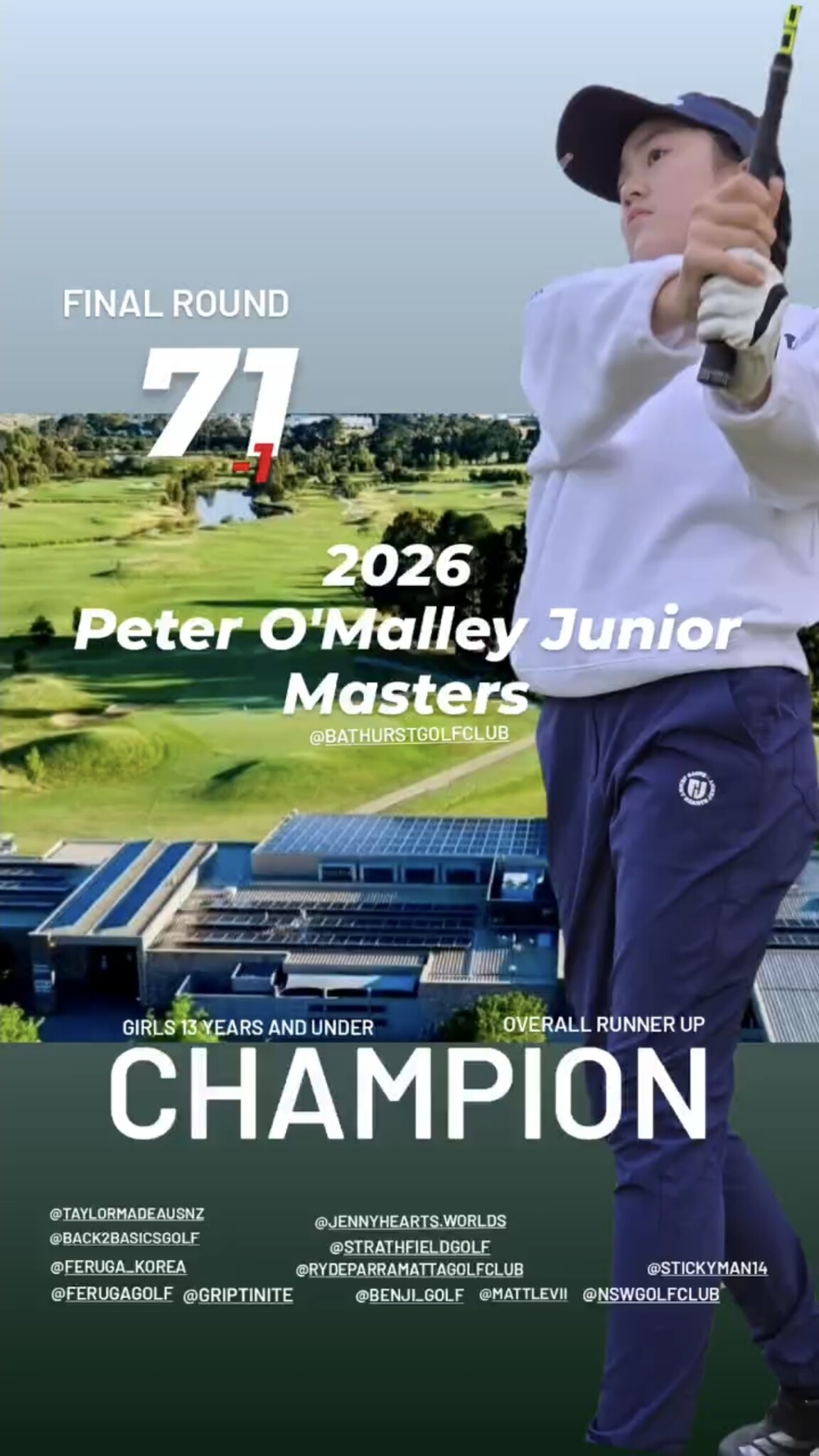 Today, we’re excited to spotlight Tirzah, Year 7, who, over the weekend, won the 2026 Peter O’Malley Junior Masters in Bathurst. Tirzah was crowned Champion of her age division and finished Runner-up across the entire field! Such an impressive achievement, showcasing incredible commitment and talent. 👏🏆⛳️🏌️‍♀️