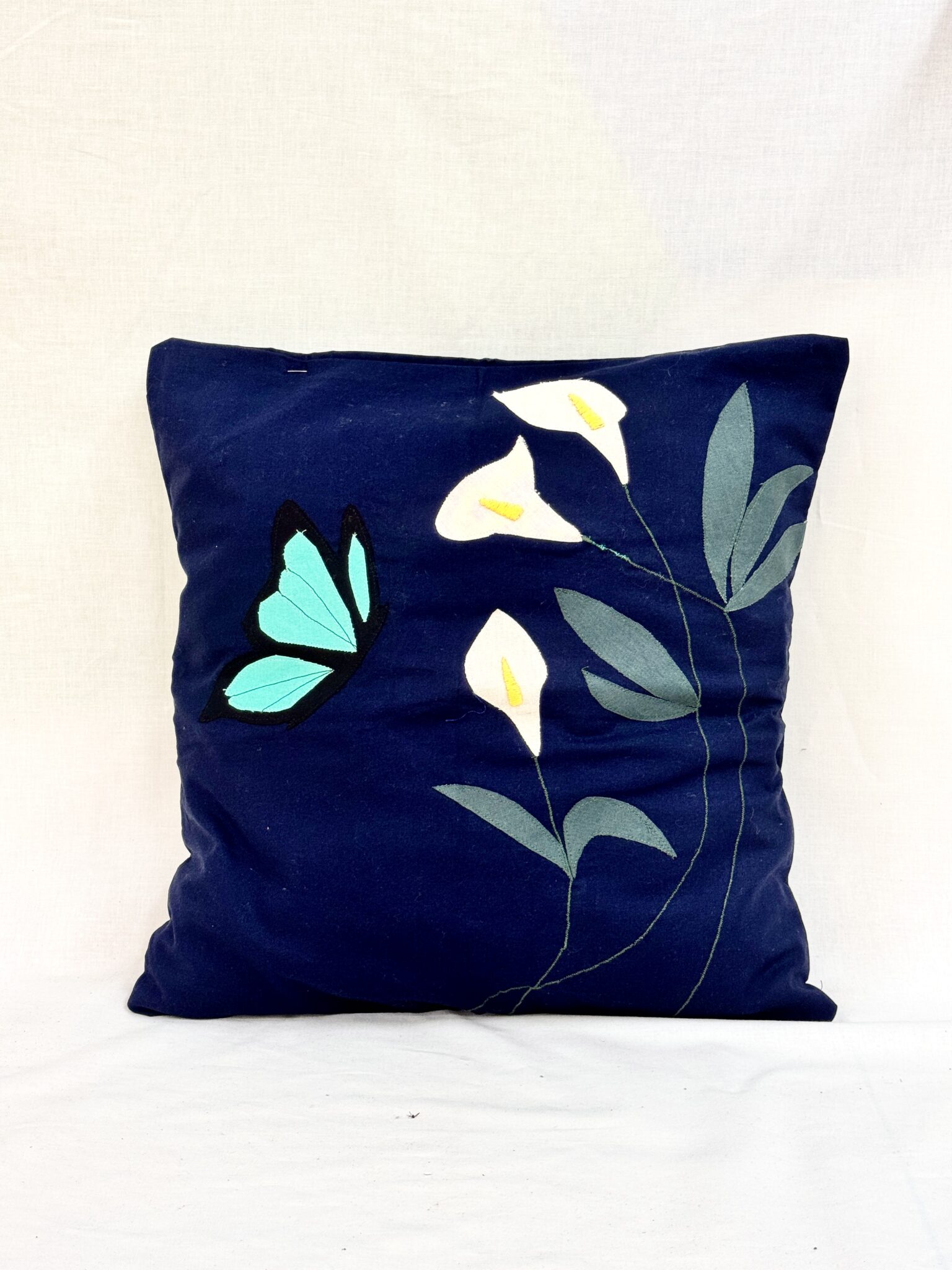 Kaya was awarded Second Prize in Stage 4 for her elegant cushion design, Botanical Harmony. Inspired by the delicate balance of nature, Kaya’s piece features calla lilies symbolising purity and elegance, alongside a butterfly representing transformation and life. She utilised applique to layer bold botanical forms onto a navy background, allowing strong colour contrast and visual impact. Intricate embroidery detailing, particularly within the lilies, added refinement and technical sophistication to the final piece. Kaya’s work demonstrated both thoughtful symbolism and a confident application of textile techniques.