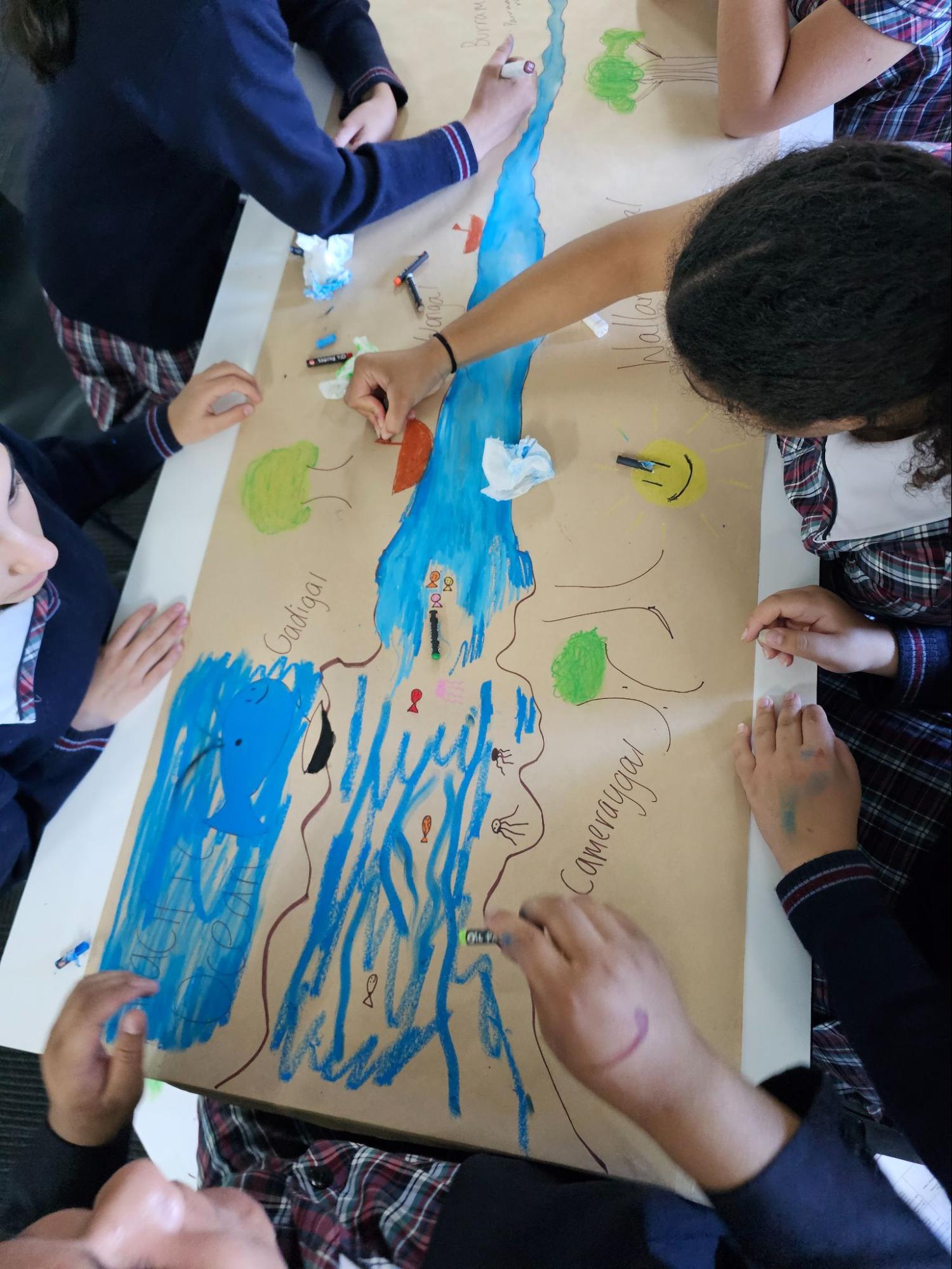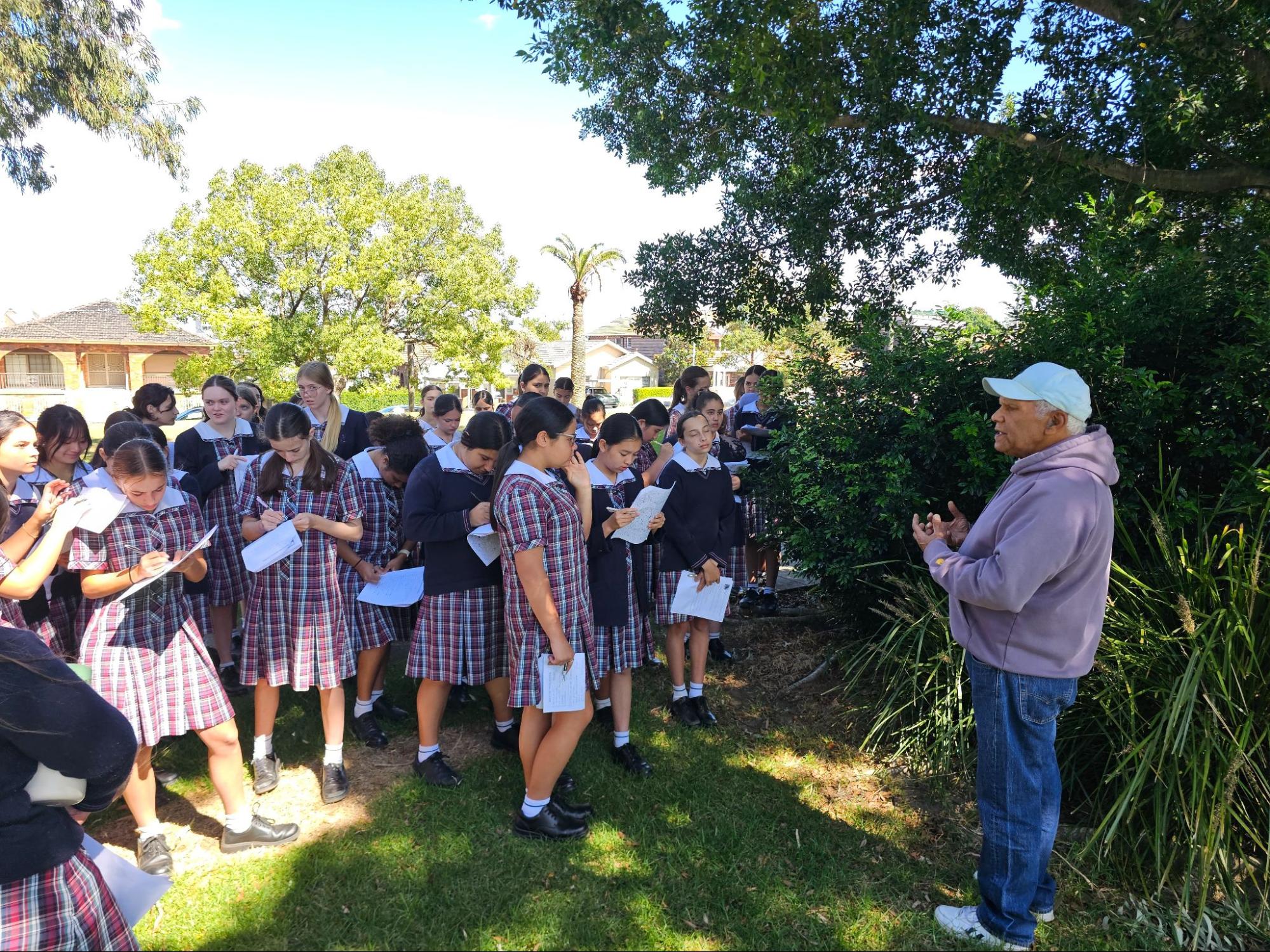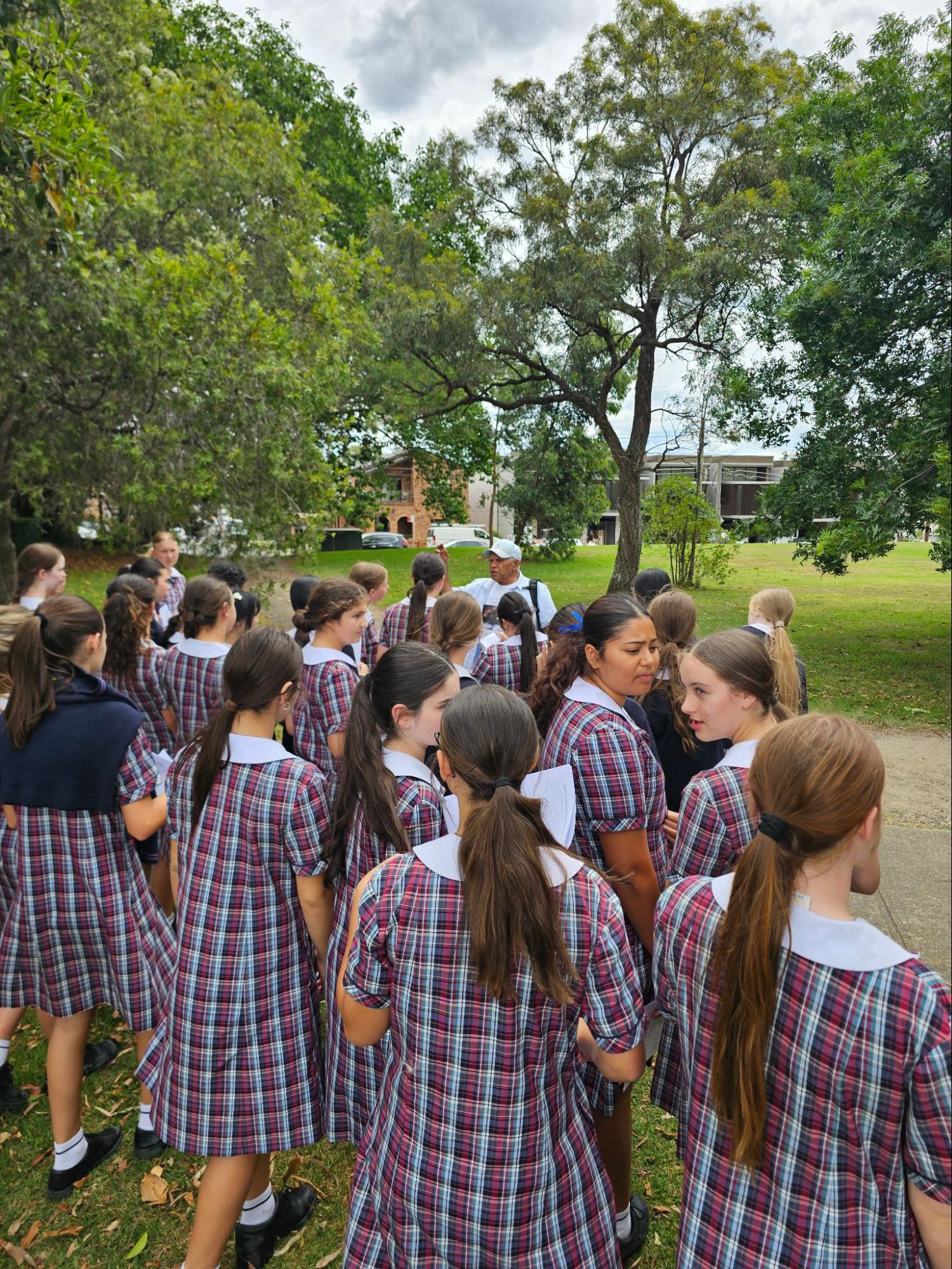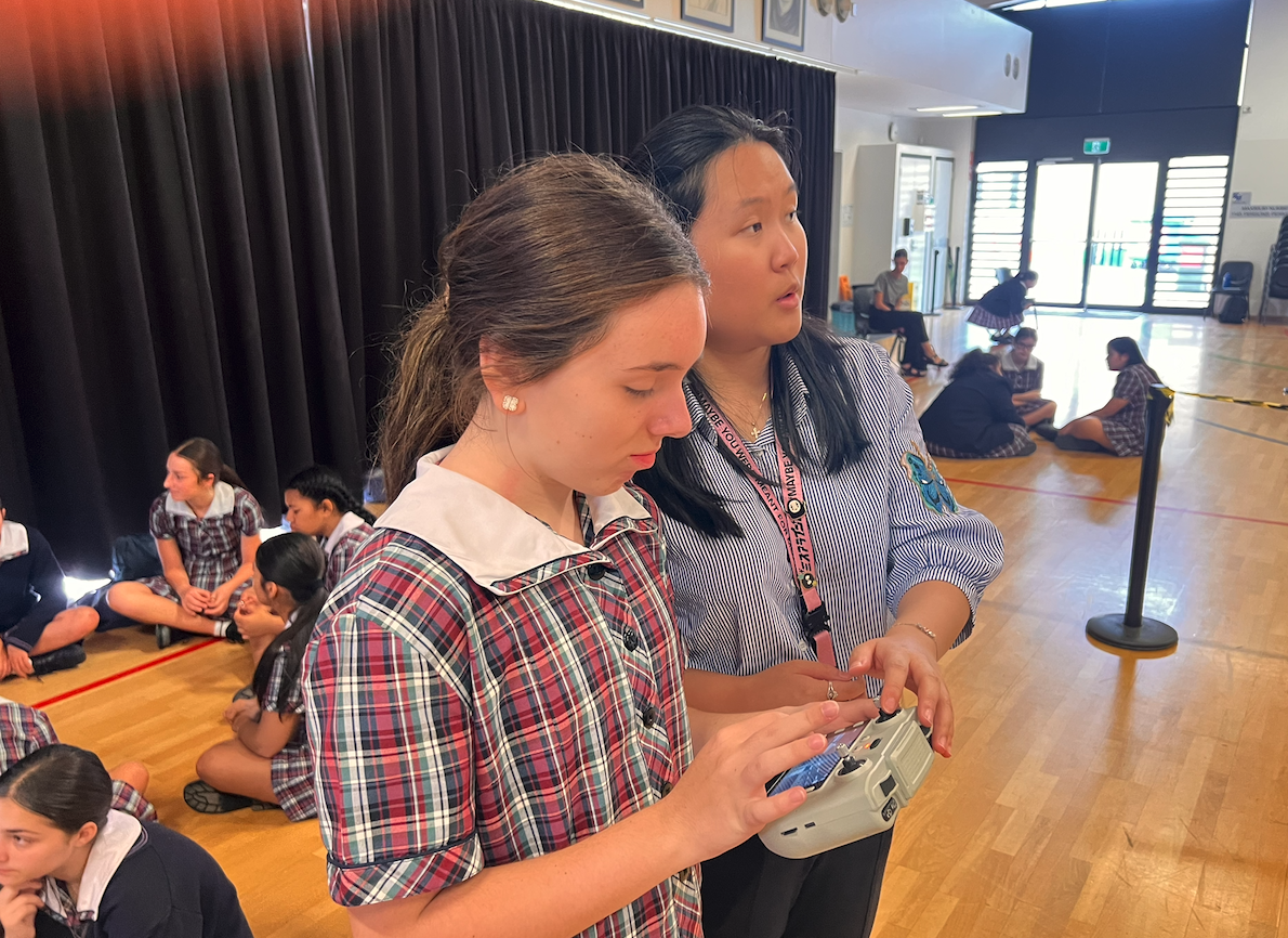Later in the day, students rotated through house group activities, including flying drones, a cultural walk with Uncle Jimmy through Five Dock Park, and the Floating House Challenge. During the nature walk, Uncle Jimmy shared his knowledge of the land, teaching students about different trees, leaves, and how Indigenous peoples used the earth’s natural resources. The Floating House Challenge required students to work in teams to design and construct a floating house using recycled materials, mimicking the floating villages found around the world amid the ongoing climate crisis. Students tested how many rocks their structures could hold while remaining afloat, learning about sustainability and real-world living conditions.