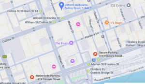 • The closest Parking is the Secure Parking at 376 Flinders St.