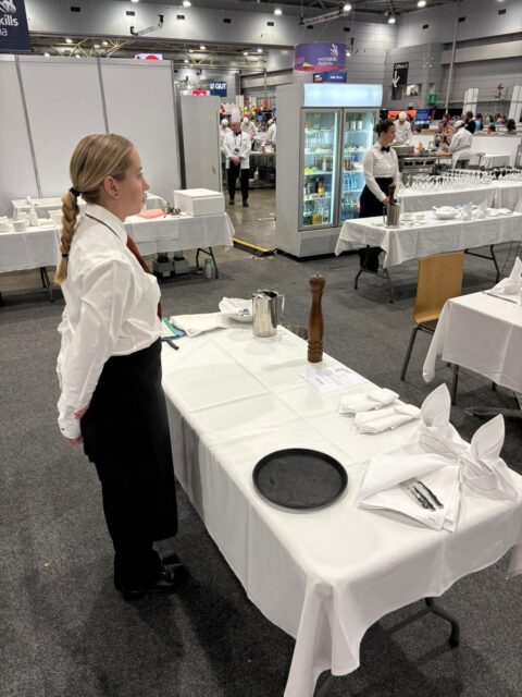 Over three days, Elize ensured her cutlery was polished, linens folded, and tables set to perfection as she then waited for Cookery students to prepare the meals which were then served to guests.
