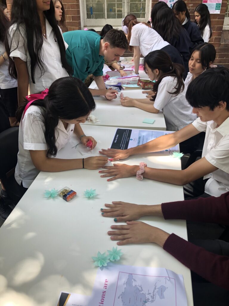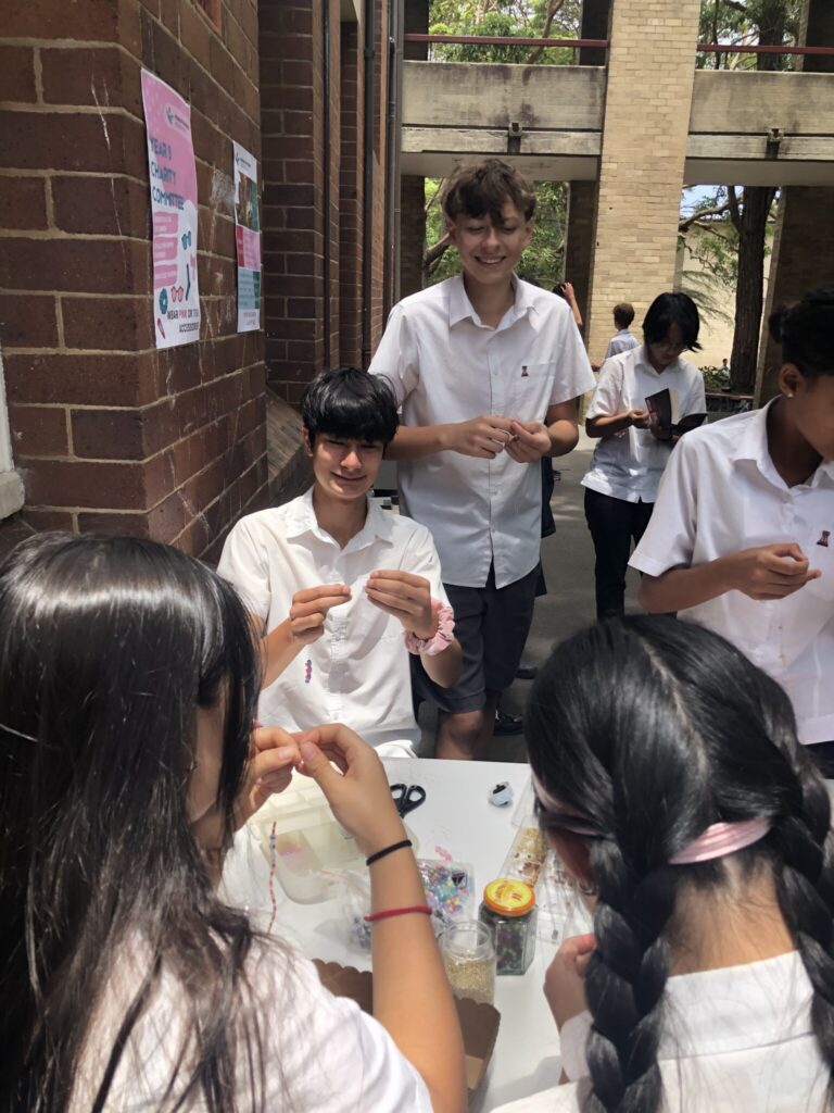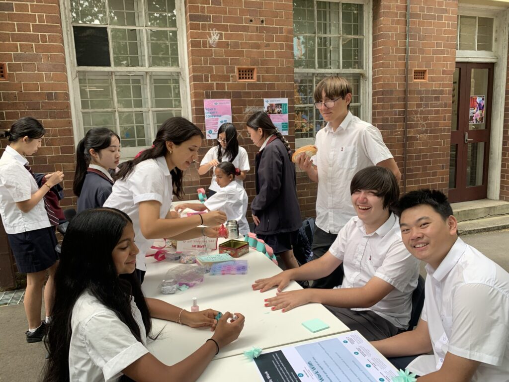 This year, the year 9 Charity and Social Justice committee has been supporting Women for Women International, an organisation that helps to empower women in countries across the globe to receive an education and economic opportunities. On Wednesday 10 December, to coincide with International Human Rights Day, we held interactive and informative stalls to help inform students about this organisation and its important work. Students wore pink and teal accessories, and had the opportunity to make friendship bracelets and have their nails painted in the charity’s colours while talking to our members. On the day, we raised $258.45. Thanks to everyone for their support of our event!