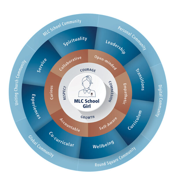 Our wellbeing framework places the MLC School girl at the heart and is informed by research, recognising that wellbeing is multidimensional, encompassing social, emotional, physical, and psychological aspects. Importantly supporting students as their needs change as they move through different stages of school life.