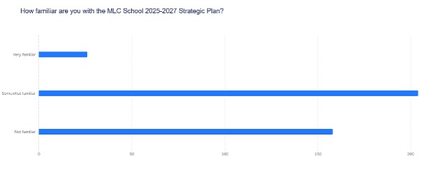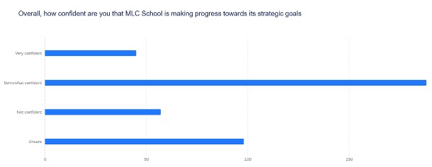 Thank you to everyone who completed the parent survey regarding the visibility of our progress on the 2025-2027 Strategic Plan at the end of last year. Almost 500 responses were received, with the majority of respondents rating themselves as familiar with the plan and confident that we are making progress towards our strategic goals. It was most encouraging to see that parents are in support of the direction set by the plan and keen to see further embedding of the plans into the day-to-day experience of the school. Feedback on areas for improvement aligns with our strategic goals, giving us confidence that the direction outlined in the plan is the right one for the School over the next two years.