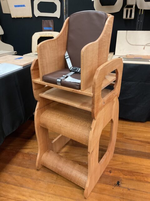 For her Major Design Project Maya decided to create a multifunctional, compact highchair that addresses the challenges of limited living space and financial constraints faced by young families in Germany and Australia. The design is constructed from Sily oak provides a single, adaptable seating solution that evolves with the child from infancy to early childhood, reducing the need for multiple purchases and minimising environmental impact.