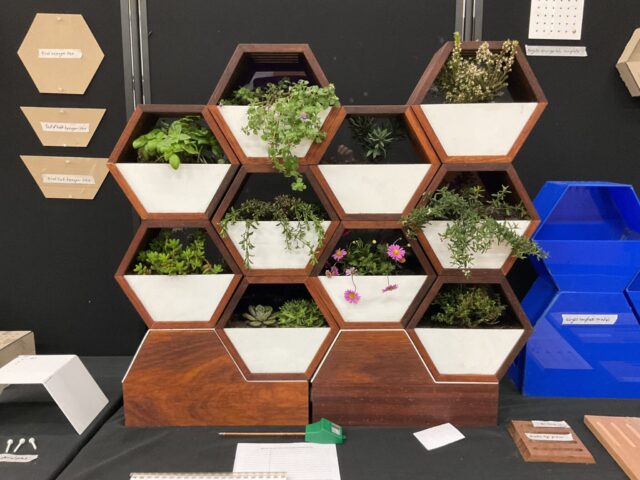 Olivia’s design involved a solution to outdoor water use that aims to prevents water wastage and over watering. This resulted in the creation of a visually appealing and functional plant stand made from sustainable materials that can filtrate and reuse water in a self-sufficient manner. The plant stand can withstand the elements in outdoor conditions.