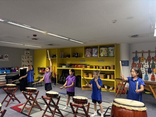 Our Junior School Taiko classes have had an energetic start to the year with Taiko drumming quickly becoming a highlight on Tuesday afternoons. For many students, Taiko is a new experience. Taiko is a traditional form of Japanese ensemble drumming known for its powerful rhythms, strong sense of timing, and emphasis on group performance. Students are learning not only how to play, but how to listen and keep in time with others. More excitingly, it has also been a great way to bring students together. Playing side by side encourages teamwork, and it has been lovely to see friendships forming within classes and across year levels. Over the course of this term their confidence has grown and so has their sound!