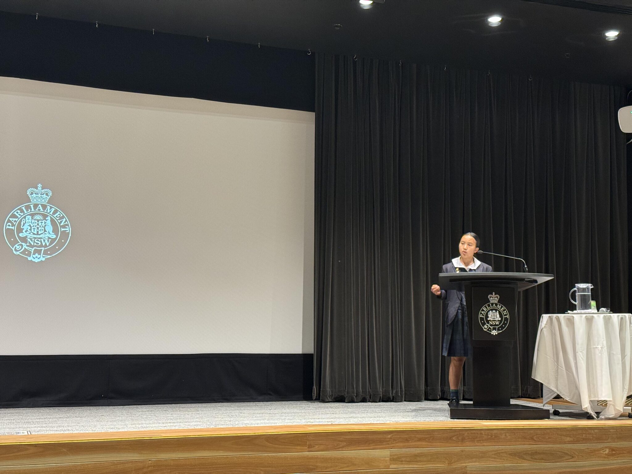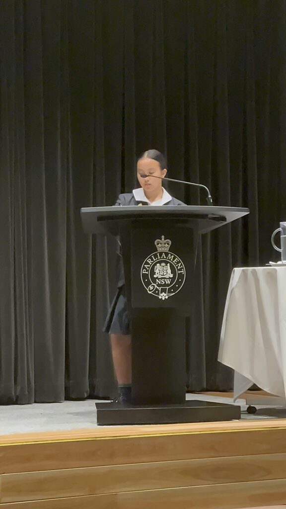 Arabella Hoang of Year 8, progressed to the state finals of the UN Voice State Final, at NSW Parliament House, this week. To be selected for the state finals is a most impressive achievement. Congratulations, Arabella!