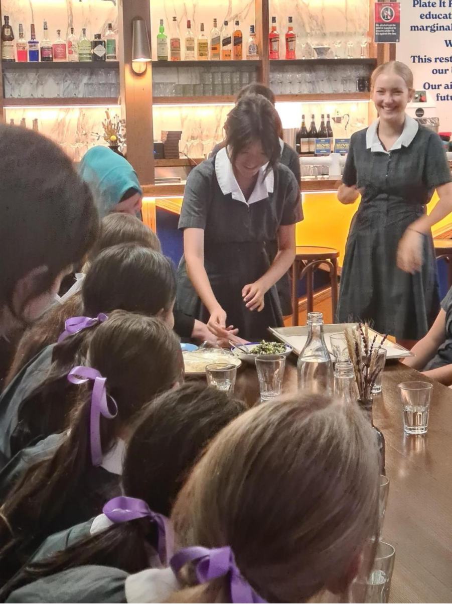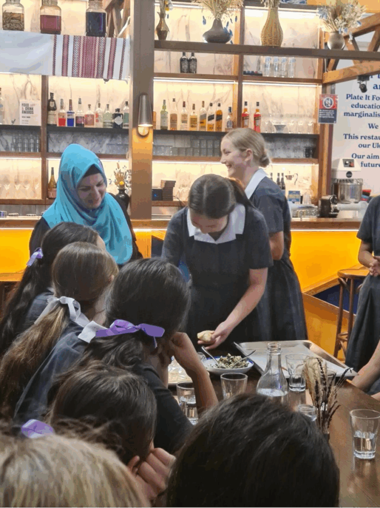On Tuesday, 11 November, myself and the other Year 10s taking the Global Studies elective, had the opportunity to travel to visit Kyiv Social in Chippendale. Kyiv Social is a social enterprise that is run as one of the businesses run by Plate It Forward. Plate It Forward is a charity that aims to combat food insecurity in Sydney, and it also has an extensive impact overseas. We learnt that alongside Kyiv Social, three other social enterprises provide jobs for refugees and other disadvantaged communities: Kolkata Social, Kabul Social and Colombo Social, all of which make delicious meals unique to the country. We had the opportunity to try traditional Ukrainian Honey Cake and some savoury pastries made for us by the refugees at Kyiv Social. It was an incredible experience, and it was wonderful to learn about the impact that Plate It Forward has in Sydney, Afghanistan, Sri Lanka and India. To follow up on this experience the class ran a fundraising event on the Friday of Week 5 selling snow cones and baked items, raising enough money to fund 300 meals for people in need.