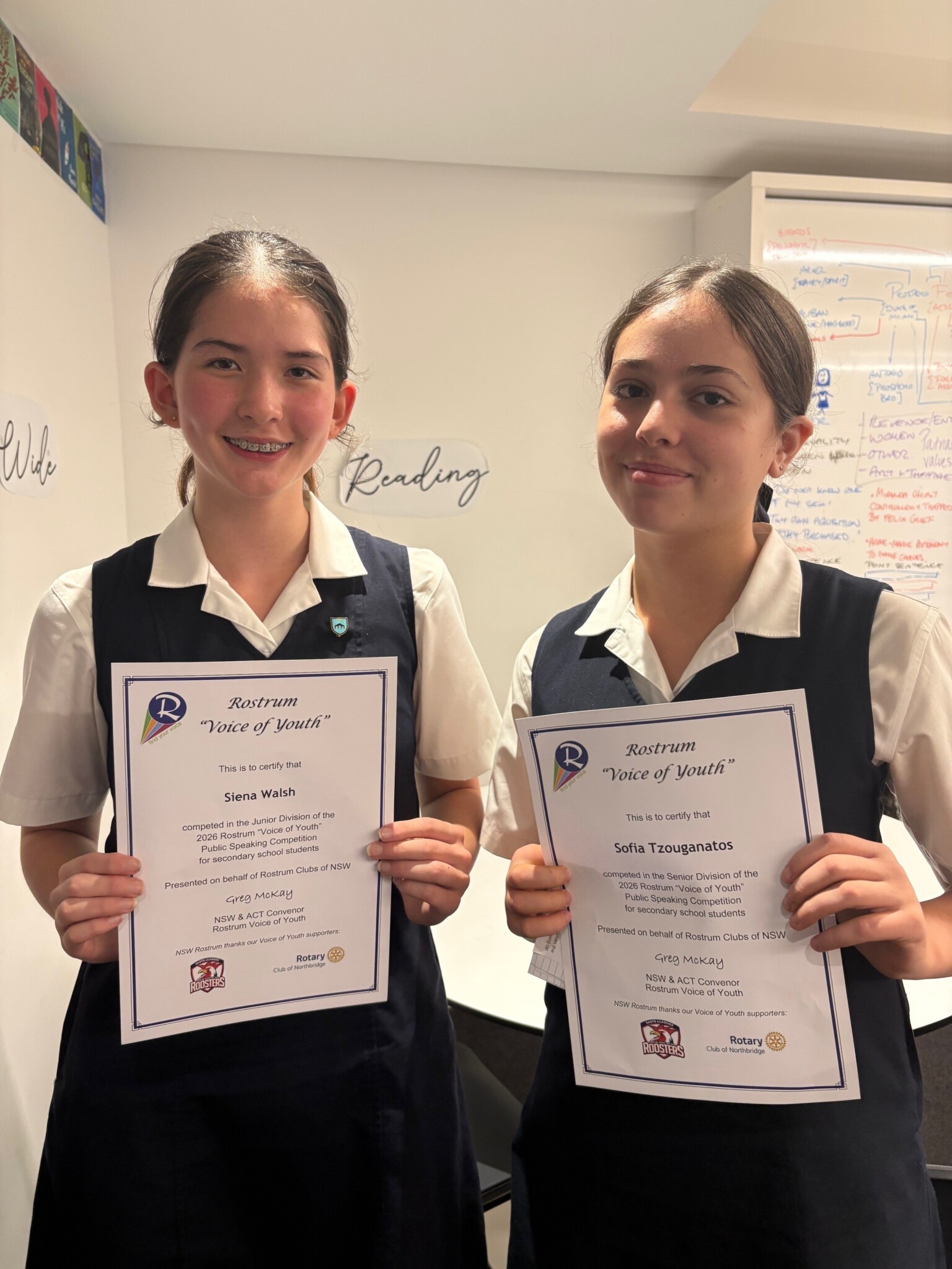 The Rostrum Voice of Youth competition is a regular event in the Term 1 Public Speaking calendar and SCEGGS had a very successful first round. Six girls represented the school: Year 8’s Annabelle Dempsey, Bianca Elias and Siena Walsh, as well as Sofia Tzouganatos (Year 10), Jessica Gallie (Year 11) and Pippa Brenner (Year 12).