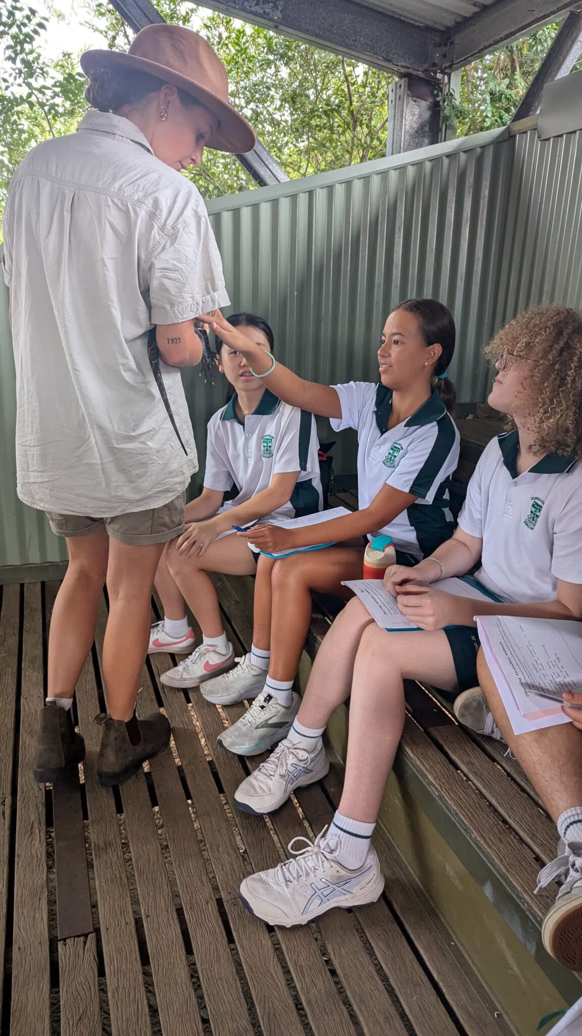 Our Year 8 scientists recently traded the labs for the enclosures of Symbio Wildlife Park, turning the bush into their classroom for the day. Guided by Rangers, our students got up close and personal with pythons, skinks, blue tongue lizards and baby crocodiles during the initial presentation. This helped the students connect the dots between an animal’s specific features and its ability to endure the Australian climate, making the science feel much more real life. The classes then went off with their specific ranger to go for a Native Animals Walk or Exotic Animals walk, whilst learning about structural, behavioural and physiological adaptations.