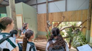 On the Native Animal Walk, students had the opportunity to interact closely with local wildlife, including Koalas, Eastern Grey Kangaroos, and Swamp Wallabies. They also explored the Tasmanian Devil enclosure and reptile house. Year 8 students gained significant insight into Symbio’s participation in ‘Breed to Release’ programs, specifically focusing on two endangered native Australian animals: the Green and Golden Bell Frog and the Bellinger River Snapping Turtle.
