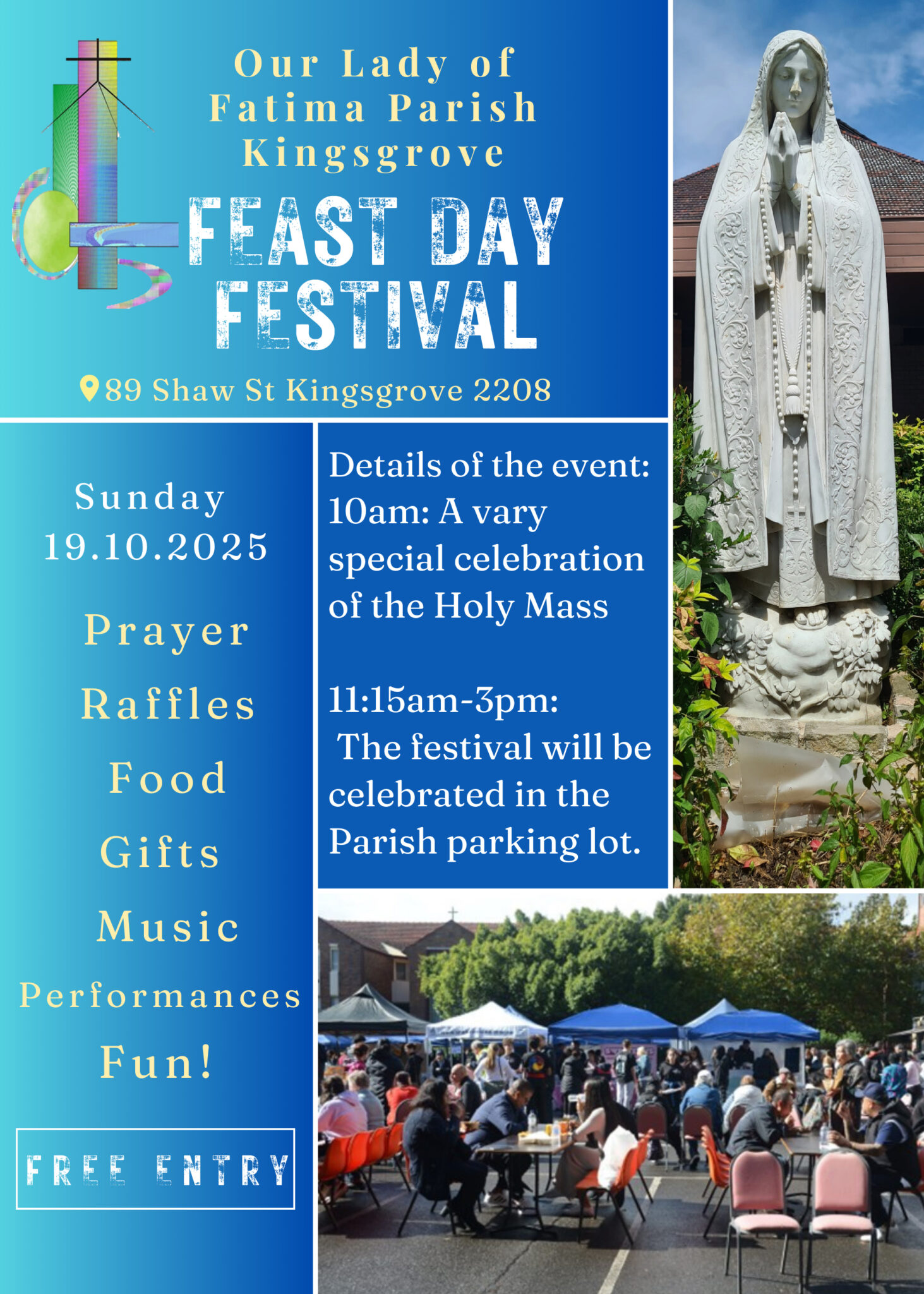 - LOCATION: Our Lady of Fatima Parish Hall, 825 Forest Road, Peakhurst