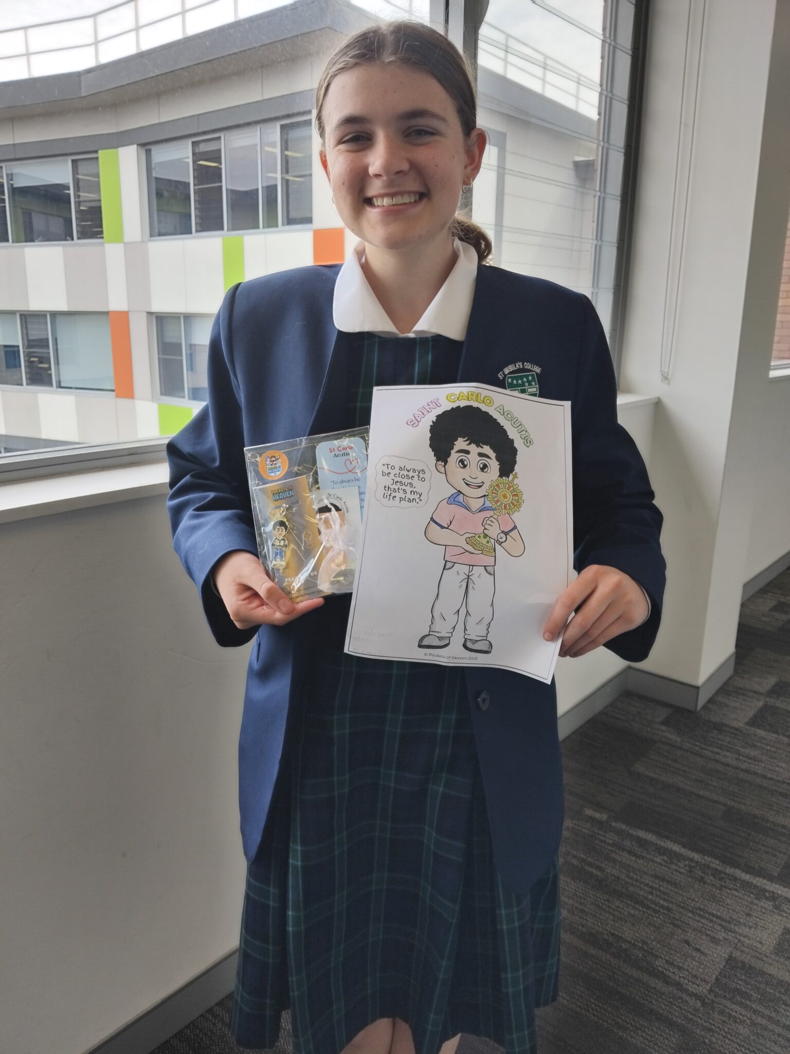 One Year 9 student was thrilled to be named among the lucky winners, receiving a prize pack that included a sticker, keyring, bookmark, and blessed Carlo Acutis medal. The competition not only celebrated artistic expression but also encouraged students to engage with their faith in a meaningful way. Carlo’s story, especially his passion for technology and devotion to the Eucharist, served as a powerful backdrop for this joyful event.