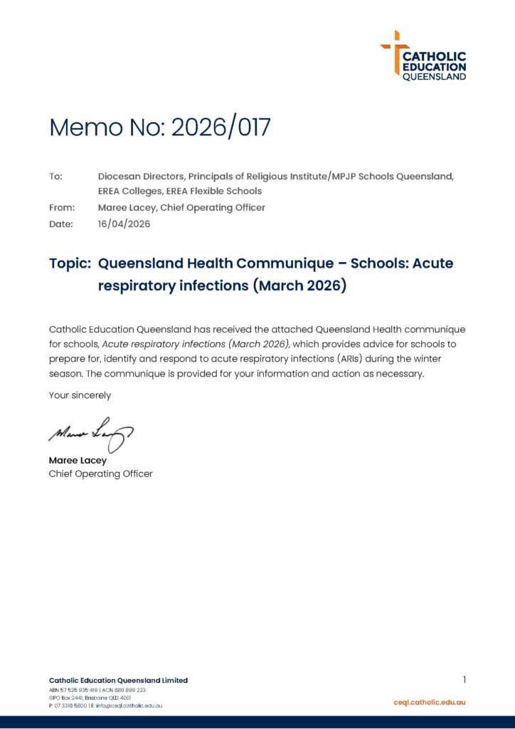 MEMO 2026/017 QLD HEALTH COMMUNIQUE – SCHOOLS