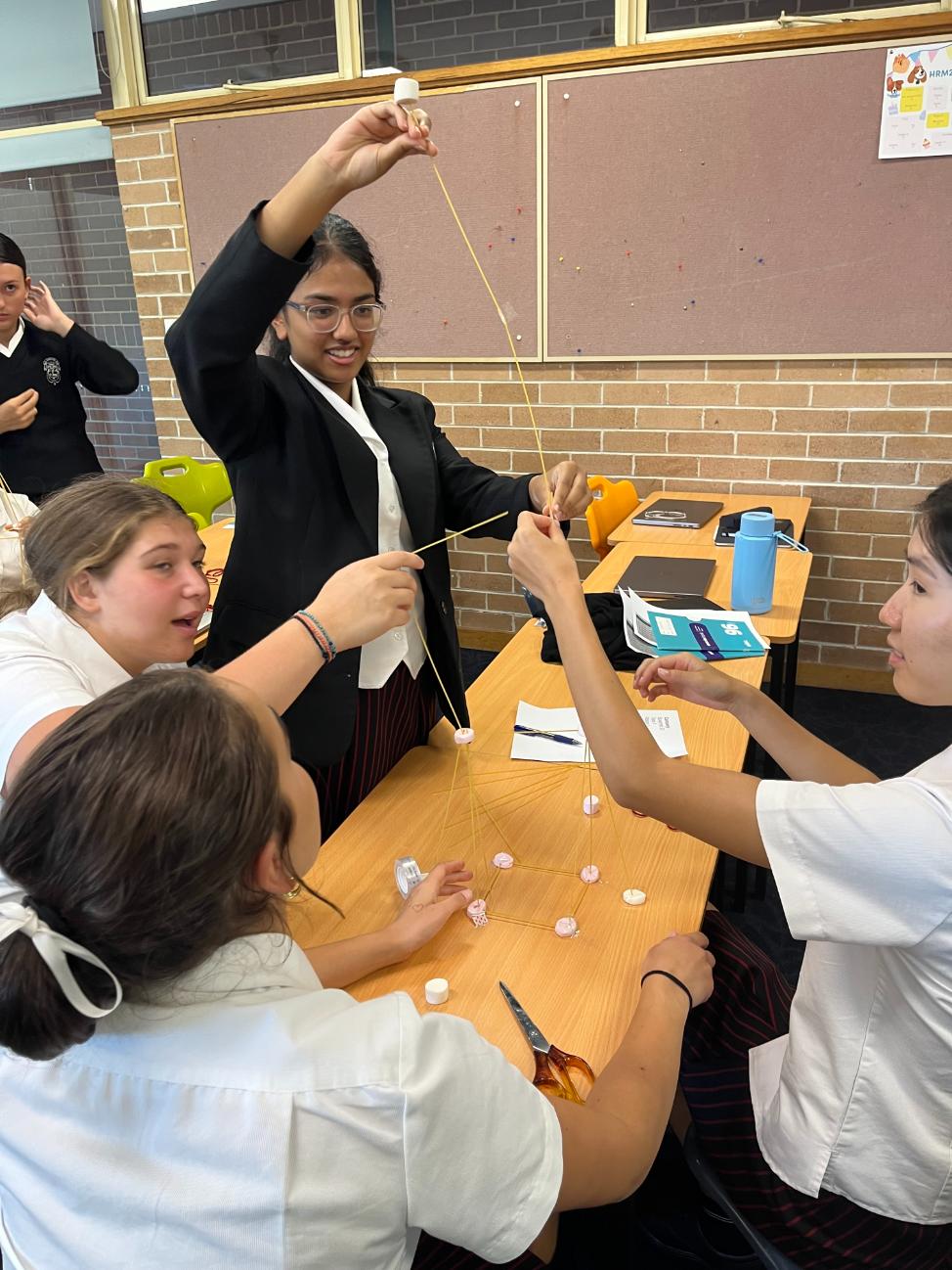 Year 11 Business Management (IB) students recently took part in the Marshmallow–Spaghetti Challenge as a hands‑on introduction to different business structures. Working as sole proprietors, partnerships or corporations, students were tasked with building the tallest free‑standing structure using limited materials. This practical challenge helped them experience the realities of decision‑making, delegation, teamwork and risk-taking within different organisational forms. The activity sparked lively discussion, creative problem‑solving and genuine insight into how businesses operate in the real world.