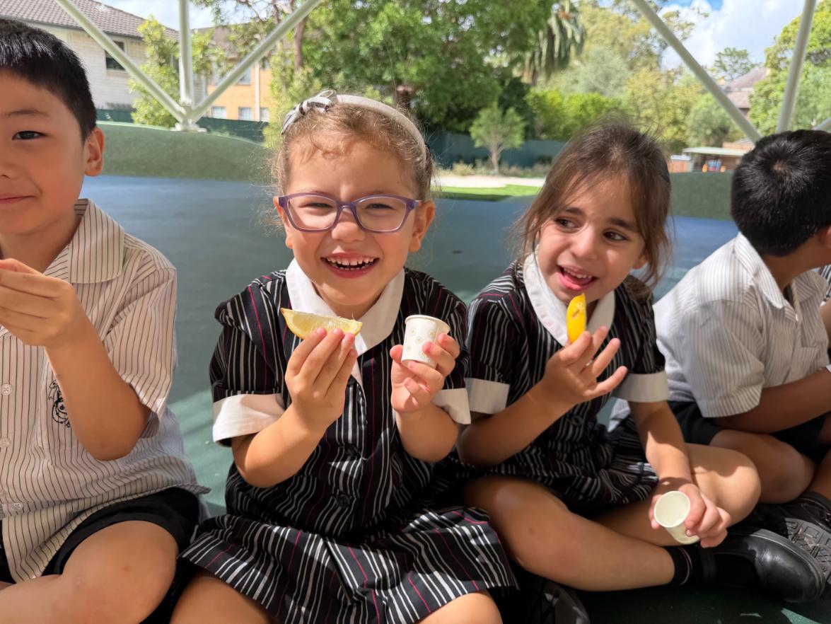 Students then tasted three flavours, sweet apple, salty crackers and sour lemon. Both the sweet and salty flavours were crowd-pleasures with students discussing why they liked these familiar flavours. The lemon tasting created the biggest reaction of the lesson, with brave smiles, scrunched‑up faces and lots of discussions about why some people love sour flavours and others hate it!