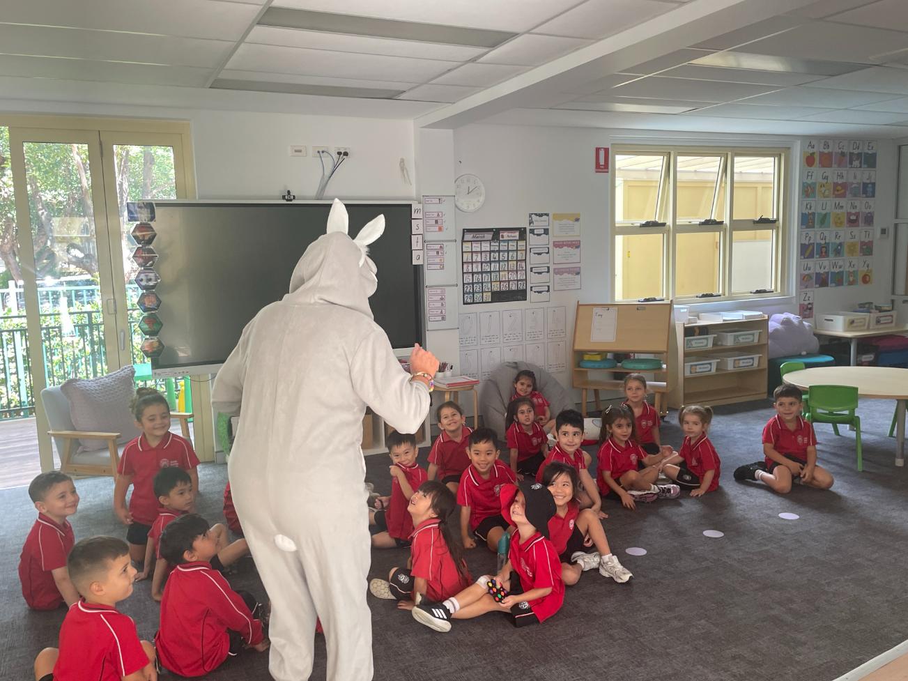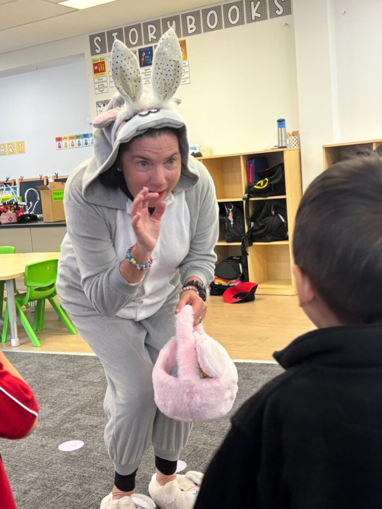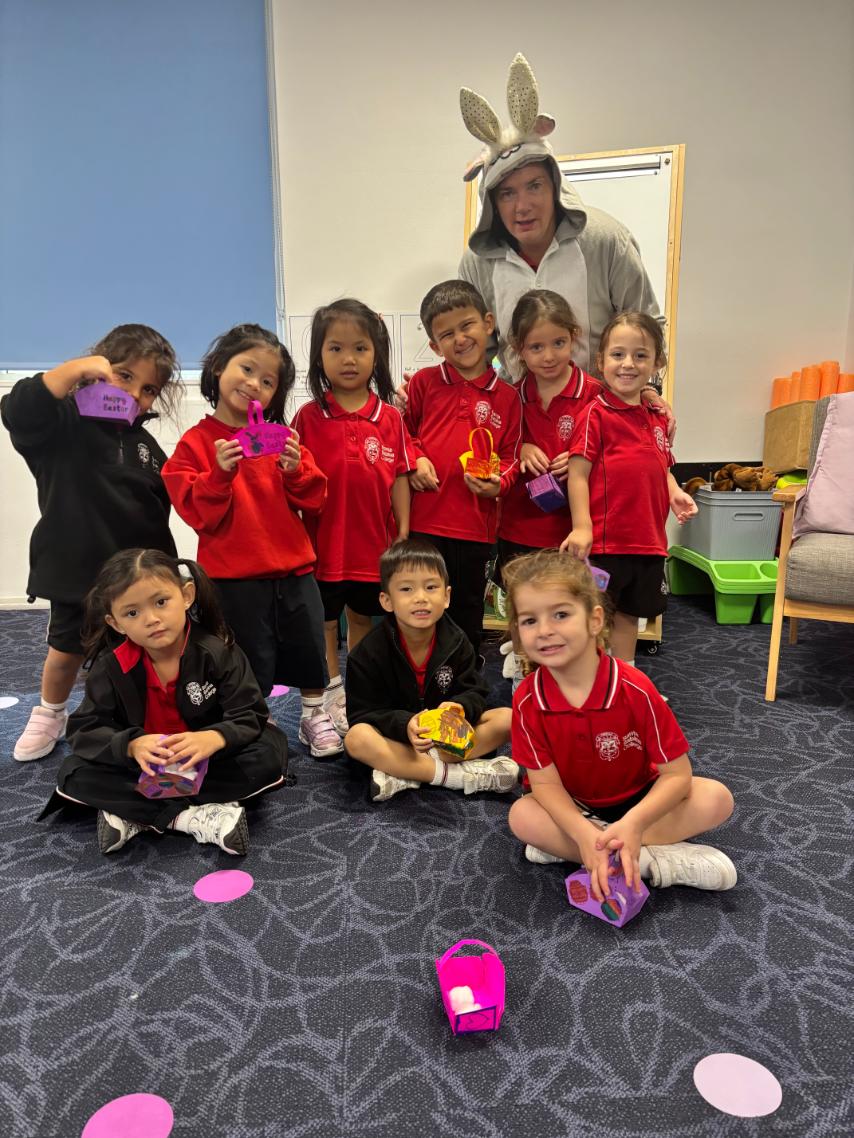 During the last week of Term 1, Prep had a very special visitor — Ms Sutherland, the Easter Bunny. The children were thrilled to take part in an Easter egg hunt, proudly using their handmade baskets to collect and count their eggs. Together with the Easter Bunny, the students collected plastic eggs while developing their maths skills through counting collections, bringing so much excitement to their week. This joyful experience not only sparked delight but also supported fine motor development and early counting skills.