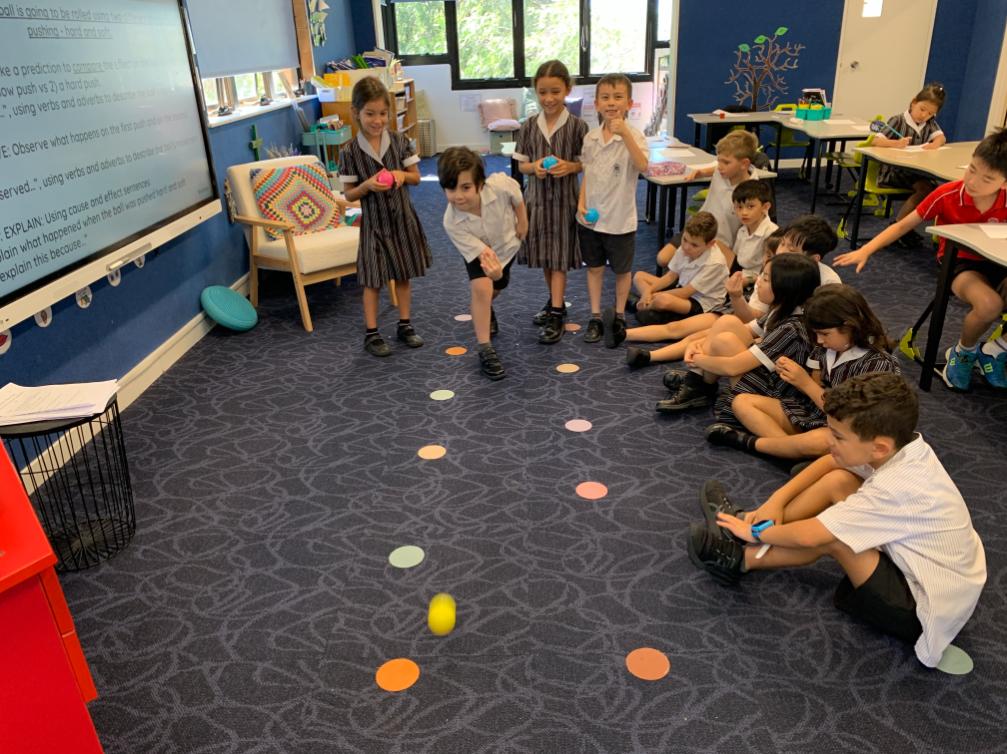 Students are practising the critical thinking skill of explaining to identify the cause and effect of a push and a pull. Using explicit examples of cause and effect, students are learning about how to explain force as having a direction and understanding that an object’s movement depends on the direction of the force applied to it. Understanding forces helps students to predict how objects will react when a push or pull is exerted on them.